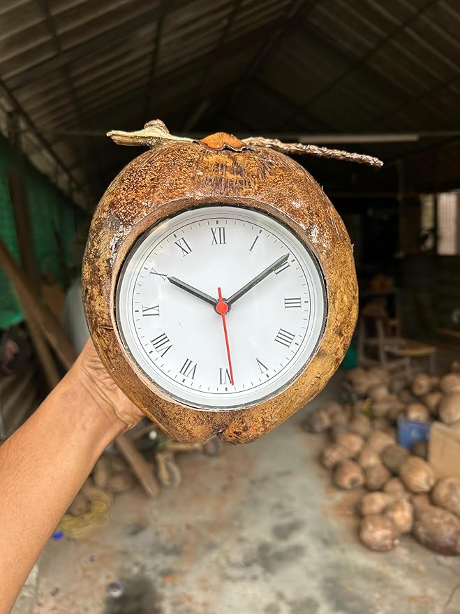 - Eco-Friendly Craftsmanship: Exclusively handcrafted from natural coconut husk, this rare clock offers a sustainable and earthy aesthetic for environmentally conscious homes.
