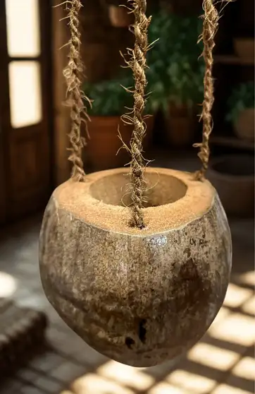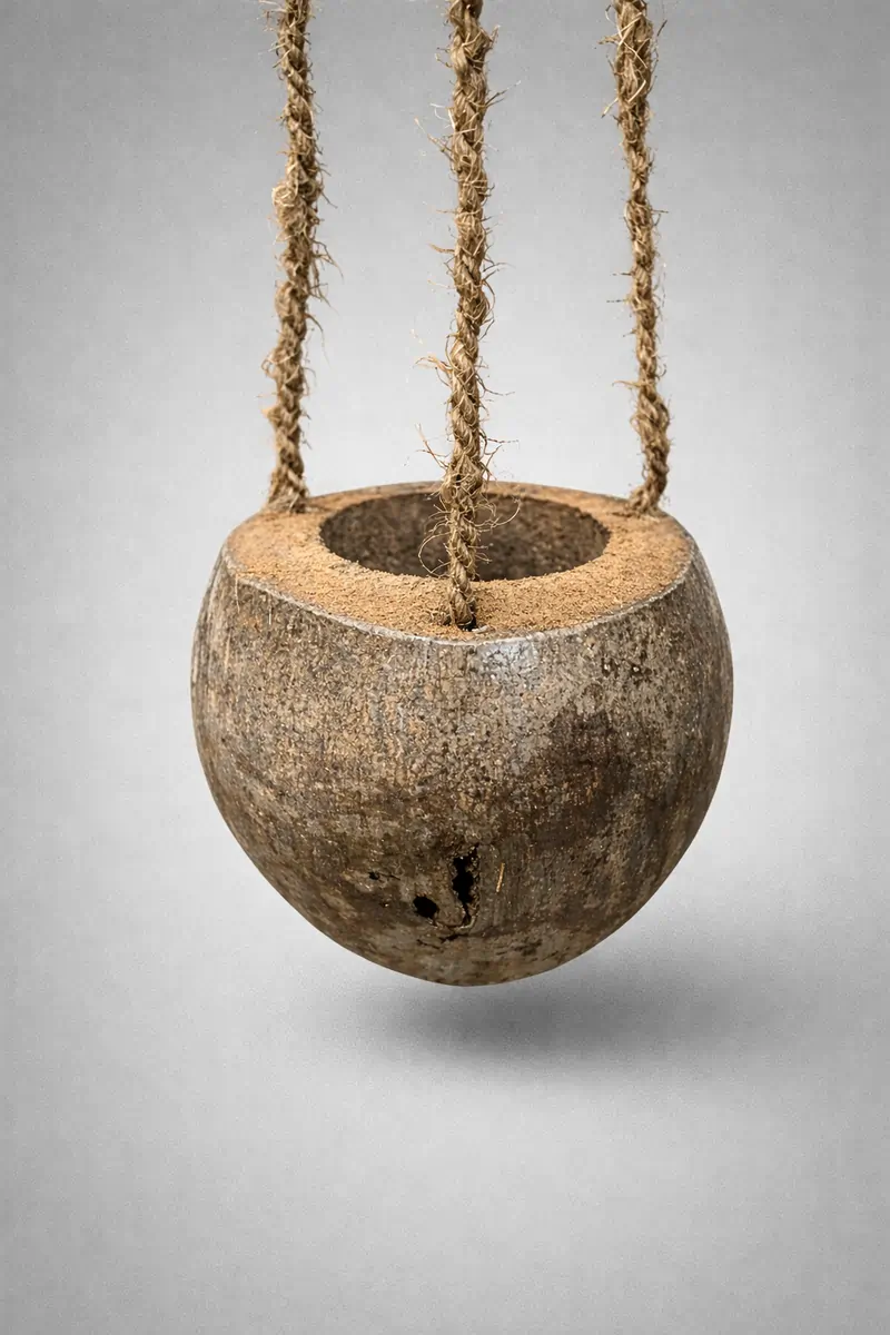 BEN TRE Coconut Husk Vase (8 inch, Brown) HANGING POT M